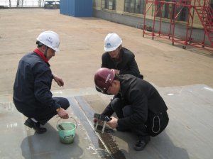 為積極開展“三思三創(chuàng)”活動,服務(wù)于工程建設(shè),確保象山港大橋工程質(zhì)量,2011年3月29日~4月2日,寧波市交通建設(shè)工程試驗檢測中心與寧波市高等級公路建設(shè)指揮部、中國船級社監(jiān)理三方聯(lián)合前往武漢,對武船重工江廈公司、陽邏公司負責加工的象山港大橋及接線工程鋼結(jié)構(gòu)制造進行廠內(nèi)加工現(xiàn)場檢查。檢查組對廠內(nèi)制做的鋼箱梁、鋼錨箱焊縫進行了現(xiàn)場抽檢,對內(nèi)業(yè)資料進行了檢查。認為焊縫總體質(zhì)量狀況較好,內(nèi)業(yè)資料基本齊全,同時對鋼錨箱焊縫表面存在不飽滿、咬邊、不平整等質(zhì)量問題要進一步改善,要求各加工方進一步加強加工質(zhì)量特別是焊縫表觀質(zhì)量控制,以確保整體施工質(zhì)量。