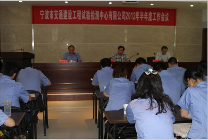 2012年6月26日,在寧波市交通安全質(zhì)量監(jiān)督站七樓會議室召開了公司2012年上半年度工作會議,會議由市質(zhì)監(jiān)站副站長、黨委副書記、站分管公司領導趙鐵衛(wèi)主持,市質(zhì)監(jiān)站站長、黨委書記李毅出席了會議并做重要講話。公司全體員工參加了會議。會上,公司董事長兼總經(jīng)理王龍國做公司半年度工作報告,王董事長以"凝心聚力,抓住機遇,開拓發(fā)展"為題,對公司上半年各項工作的開展進行了回顧總結,對下半年工作做了具體的布置安排。