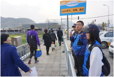 清明小長假期間,我公司每天都有三名“千人交通志愿團”的志愿者在軌道寶幢站志愿服務。五點四十八分,隨著首班軌道列車緩緩駛入寶幢站,早已準備就緒的工作人員以及一群群身著馬甲的志愿者們便開始了他們一天忙碌的工作。