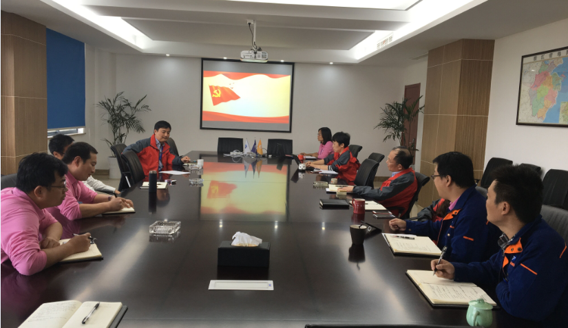 大會(huì)開幕當(dāng)天,公司全體黨員佩戴黨徽,齊聚會(huì)議室,舉起右拳,面向鮮紅的黨旗,一起莊嚴(yán)地重溫入黨誓詞,以昂揚(yáng)的姿態(tài)和飽滿的熱情聆聽十九大報(bào)告,學(xué)習(xí)十九大精神。